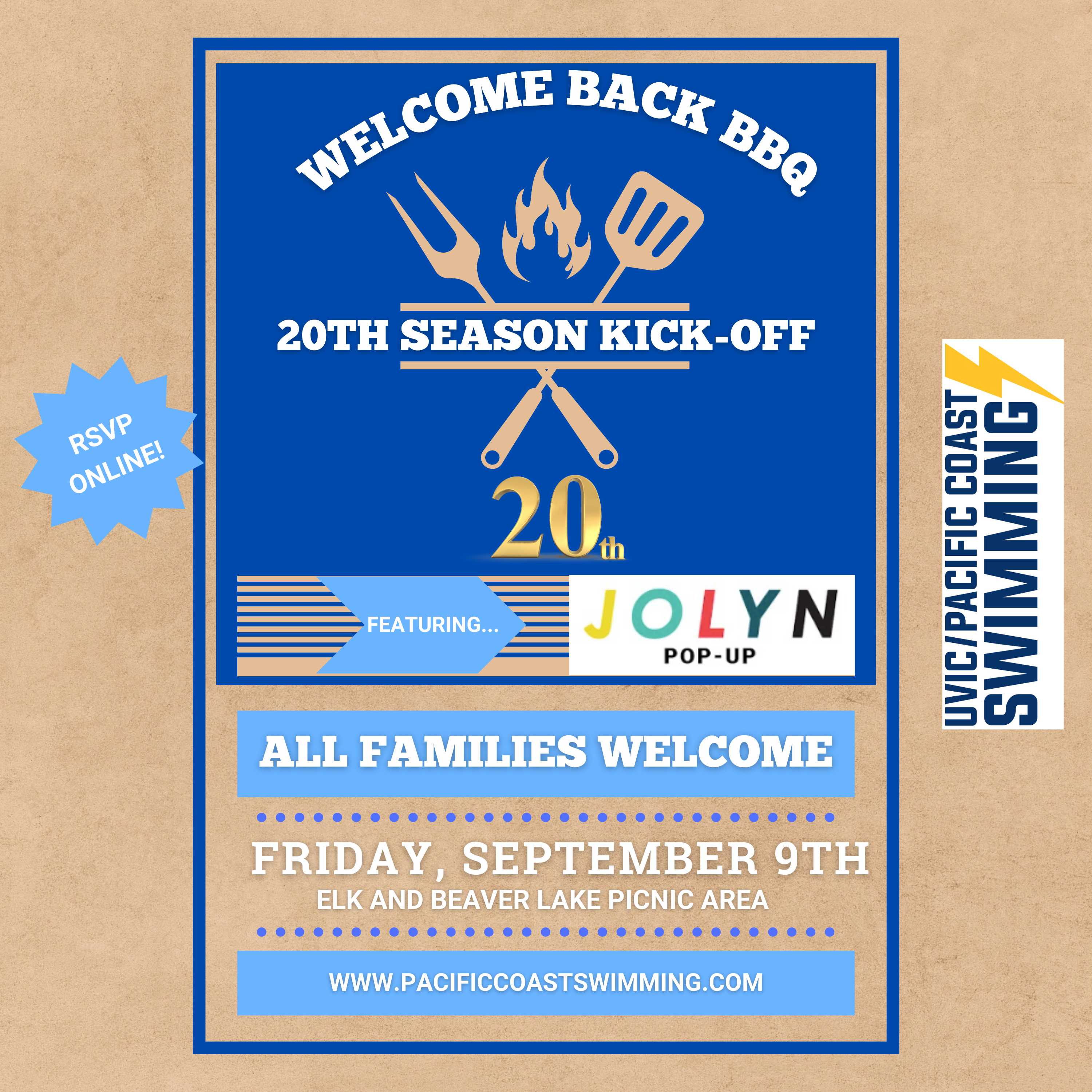 Our annual welcome back bbq is set for Friday, September 9th - so mark your calendars! All PCS families are welcomed out to enjoy some dinner & kick off the new season with our swim club. There will be an equipment table up for purchasing, as well as a featured Jolyn bathing suit pop up. Please RSVP your family's attendnace here. We hope to see you all there!