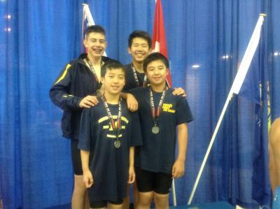 The hot weather didn't stop the small PCS contingent from some best times and a couple of trips up to the podium today in Kamloops. This morning, Trinity Aragon-Scriven (11) shaved off half a second in her 50 free to get her second AAA time, qualifying for the big meet next weekend. The first medalist of the day was a bronze for Emily Laidman (14) in 200IM in a best time, followed shortly with another bronze from Georgia Ballantyne (12) in the 50 free. Kathryn Lee (12) handily won the only gold of the night for PCS in the 200 Fly, also in a new best time. One of the big highlights of the night was the 14&U Boys 4x50 relay of Miyu Dobashi, Brendan Chow, Nathan Chow, and Ben Gyorkos bringing home the silver medal in an exciting close race.