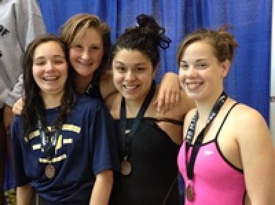 Erin Jennings (12), Lia Lancaster (12), Paula Cota (12), Fionnuala McKenna (12): Bronze in Girls 12&U 200MR