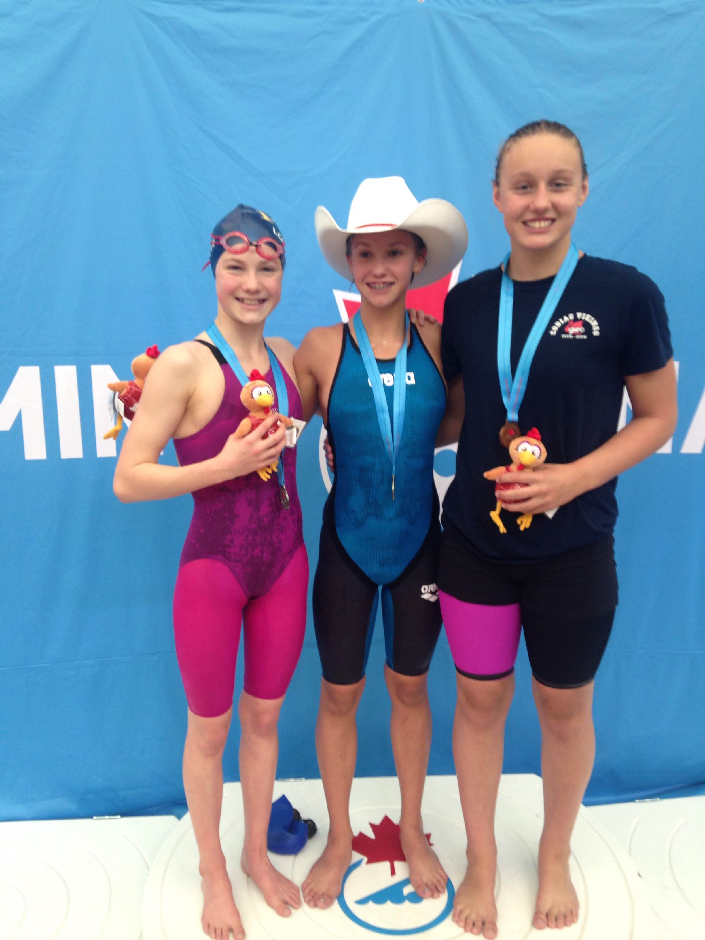 What is the best way to end an exciting night at AGN’s? With a few nice fast heats of 800 Freestyle of course. Many of the medalists had already swam their 800 in the morning since it’s a time final, so they waited anxiously until the results were in to see where they placed. Swimming at night was Sophie Lorette and Erin Lawrance. Lorette went a 9:27.72, and came in second for 13 year olds! Well done Sophie! Lawrance came in 10th in the 16-18 category with a 9:23.34. Wrapping up the night with two more 2nd places in the 800 were Anthony Gutierrez and Erin Jennings. Jennings had a time from the morning of 9:29.35, and Gutierrez also had a time from the morning of 9:08.34. Both swam good times in the secondary pool, and still came through with two silver medals.