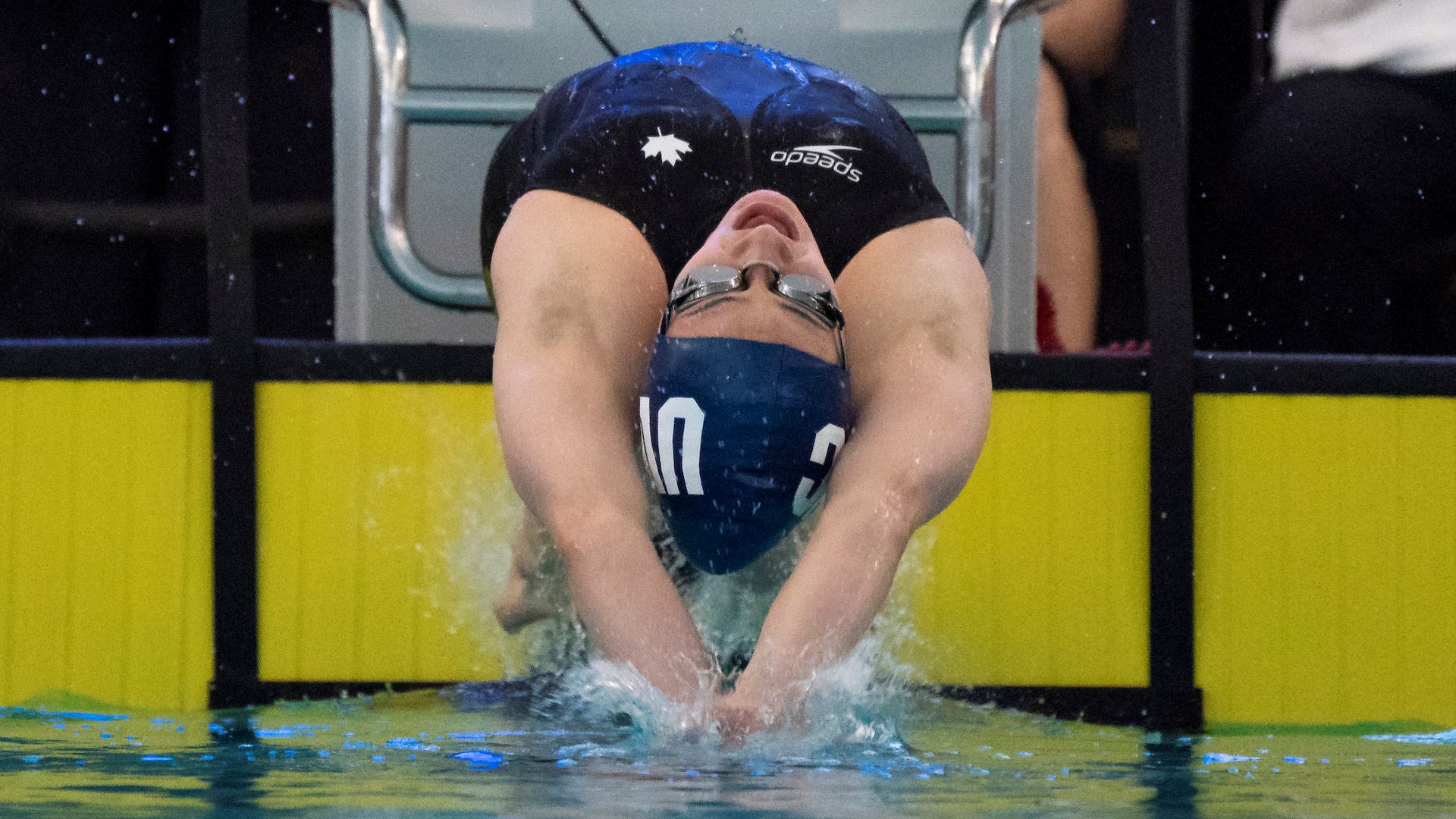 Hanus finished second in the 50-m backstroke behind four-time defending champion and Olympian Kylie Masse of Toronto who broke her own U SPORTS long course record with a time of 27.94. Hanus finished in 28.78, while UBC's Ingrid Wilm was third in 28.78. In the men's 50-m backstroke, Mallender was the lone qualifier finishing first in the C-Final for 17th overall in 26.84. Earlier in the Day during preliminaries Mallender broke his own 50-m backstroke short course record of 26.01 from 2016 in a new time of 25.91.