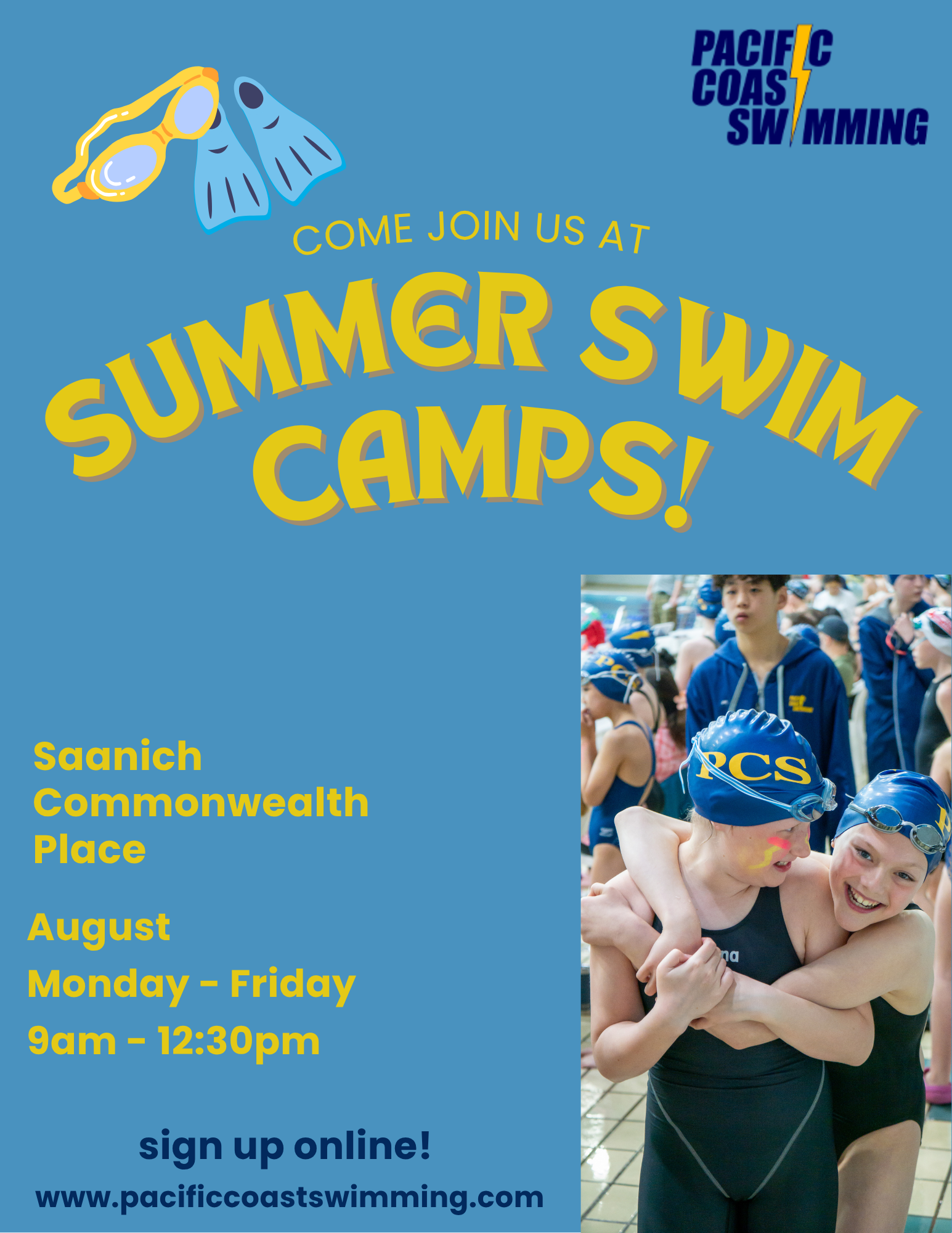 Looking to stay active, build skills, and have fun in the pool this summer? Pacific Coast Swimming’s Summer Swim Camps are designed for swimmers aged 8 and up who are eager to refine their technique, develop strength and endurance, and build confidence in a supportive and energetic environment.