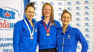 VICTORIA - Rookie Danielle Hanus medaled for the second straight day as the University of Victoria Vikes men's and women's teams remained in fourth place at the Canada West Swimming Championships in Edmonton, Alberta.