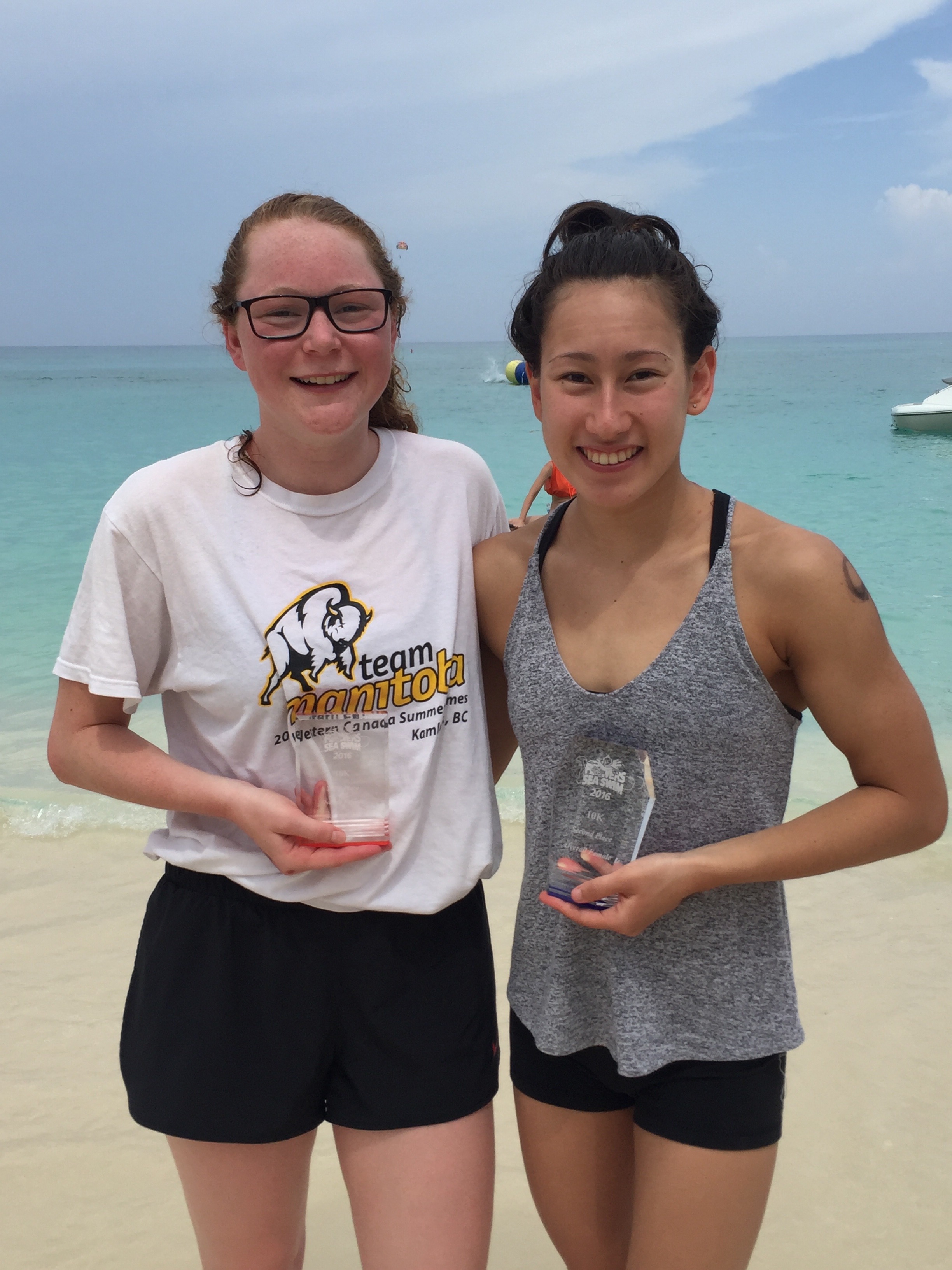 Vicky Mock raced in Grand Cayman this morning at the annual Flowers Sea swim. This 10km race was chosen by Swim Canada as the qualification for the Junior Worlds Open Water race, taking place in the Netherlands in July. To make the team, Vicky had to be one of the top two Canadian swimmers in her age group. Vicky finished second overall to Emily Brunemann, the 2013 10km World Cup series winner. Vicky was near the top throughout the race, and with Emily broke away from the rest of the pack with approximately 3km left in the race. Emily was able to pull ahead of Vicky eventually, but never by more than 5-10 meters as Vicky wouldn't back down through to the very end.