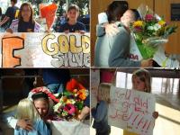 Paralympian Stephanie Dixon arrived home in Victoria and was greeted by 35+ UVPCS swimmers, coaches, parents and friends, and A-Channel television cameras. Stephanie set six Canadian records and one World record at the Beijing Paralympics and came home with four medals (Gold, 2 Silver & Bronze). Stephanie's Gold marked the third time she won the 100 Backstroke at the Paralympics - in 2000, 2004 and now 2008.