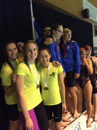 We started Saturday finals with some great 4 x 50 IM relays. Our 12-13 boys (Dylan Kormendy, Tom Chapman, Jacob Rambo and Anthony Gutierrez) placed second, although they had to race the clock in the first heat. We won 14-15 girls category (Lily Chen, Emma Carter, Jessica Luo, Allison Ballantyne) and placed 3rd in girls 16 & over (Anna Letkeman, Haley Bennett, Erin Lawrance, Rachel Sawchuk).