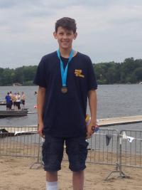 It was a stormy, cold morning at Lac-Beauport just outside of Quebec City but that didn't stop two PCS swimmers from making a trip to the podium. Anthony Gutierrez collected his first AGN gold medal, winning the 12&U boys 2.5km race, despite cutting up his leg on a rock at the start. Next, in the 17-18 year old boys 5km race, Justin Howe came out 5th in an exciting last 100 meter finish. The lone female swimmer, Erin Jennings did not disappoint in the 14 year old 5km race.