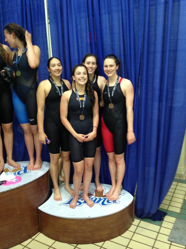 In the Girls 12 & Under 400 Free Relay, the team of Anastasia Trudel, Lily Chen, Jemma Stevens, and Kali Lancaster reached the podium with their 2nd place finish in a time of 4:20.08. Grace MacDonald, Hana Edwards, Sophie Lorette, and Jessica Luo earned a silver medal for their performance in the Girls 14 & Under 400 Freestyle Relay.