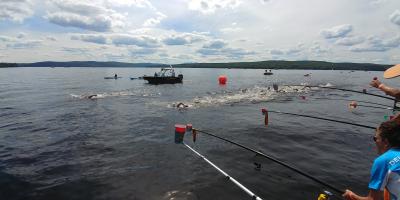 Jon and Chris were again racing some of the best Open Water Swimmers in the World this past weekend, swimming the 10km World Cup at Lac Megantic in Quebec. Both Jon and Chris are young and inexperienced in the sport when compared to many of the swimmers in these races, and every race is a huge learning opportunity for these guys. At the 5km mark Jon decided to take the lead and push the pace a bit to try and make the field less comfortable, but proceeded to lead the pack for ~4km straight, waisting too much energy in the process and letting the other top guys draft off of him. Jon staid in the fight at the front but didn't have the energy to finish at the same pace as the front finishers. Jon would finish 13th overall, second Canadian to 10-time Megantic participent Xavier Desharnais, and 18.5 seconds pehind first place.