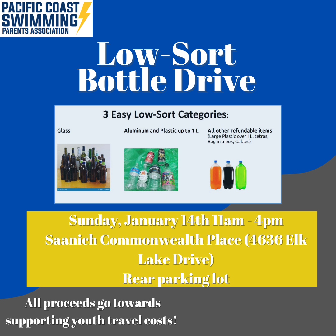 Bring your empties on January 14th to Saanich Commonwealth Place (rear parking lot) to support our swimmers who are travelling both Nationally and Internationally to compete!