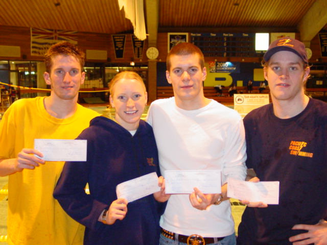 Pacific Coast Swimming had a number of winners over the weekend at the 2003 Team Aquatic Supplies BC Senior Circuit. Christin Petelski (Breast), John Stamhuis (IM), Dave Creel (Distance Free) and Jesse Jacks (Fly) were all named the overall winners of the BC Senior Circuit in their respective categories.