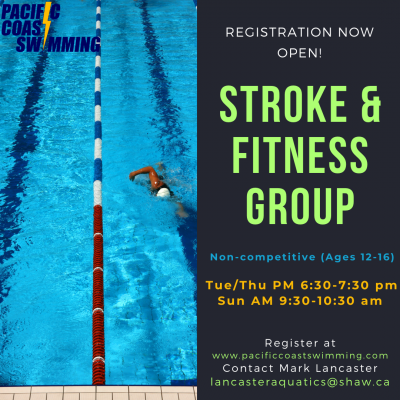 We are happy to announce that a new season of our Stroke and Fitness program is starting soon! Before we can get back in the pool, we first need to reach a minimum of 12 swimmers. The schedule will be Tuesday and Thursday PM from 6:30-7:30 pm and Sunday AM from 9:30-10:30 am.