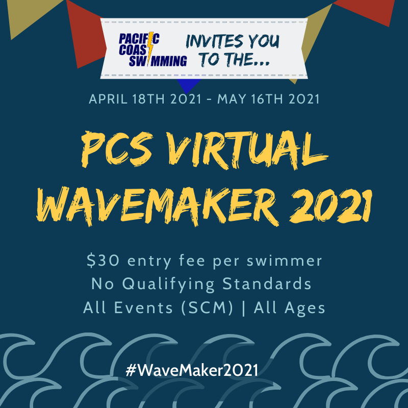 Our virtual WaveMaker meet starts in just 4 days and will run from April 18th until May 16th! We have over 400 swimmers from across Canada, Sweden and Australia participating! There is no entry limit, no qualifying standards and all ages are welcome! For a $30 entry fee, swimmers will receive t-shirts, goodie bags and more! Click HERE for more meet information and don't forget to use the hashtag #WaveMaker2021 and tag us @pacificcoastswimming in any of your WaveMaker photos! Let's go Bolts!
