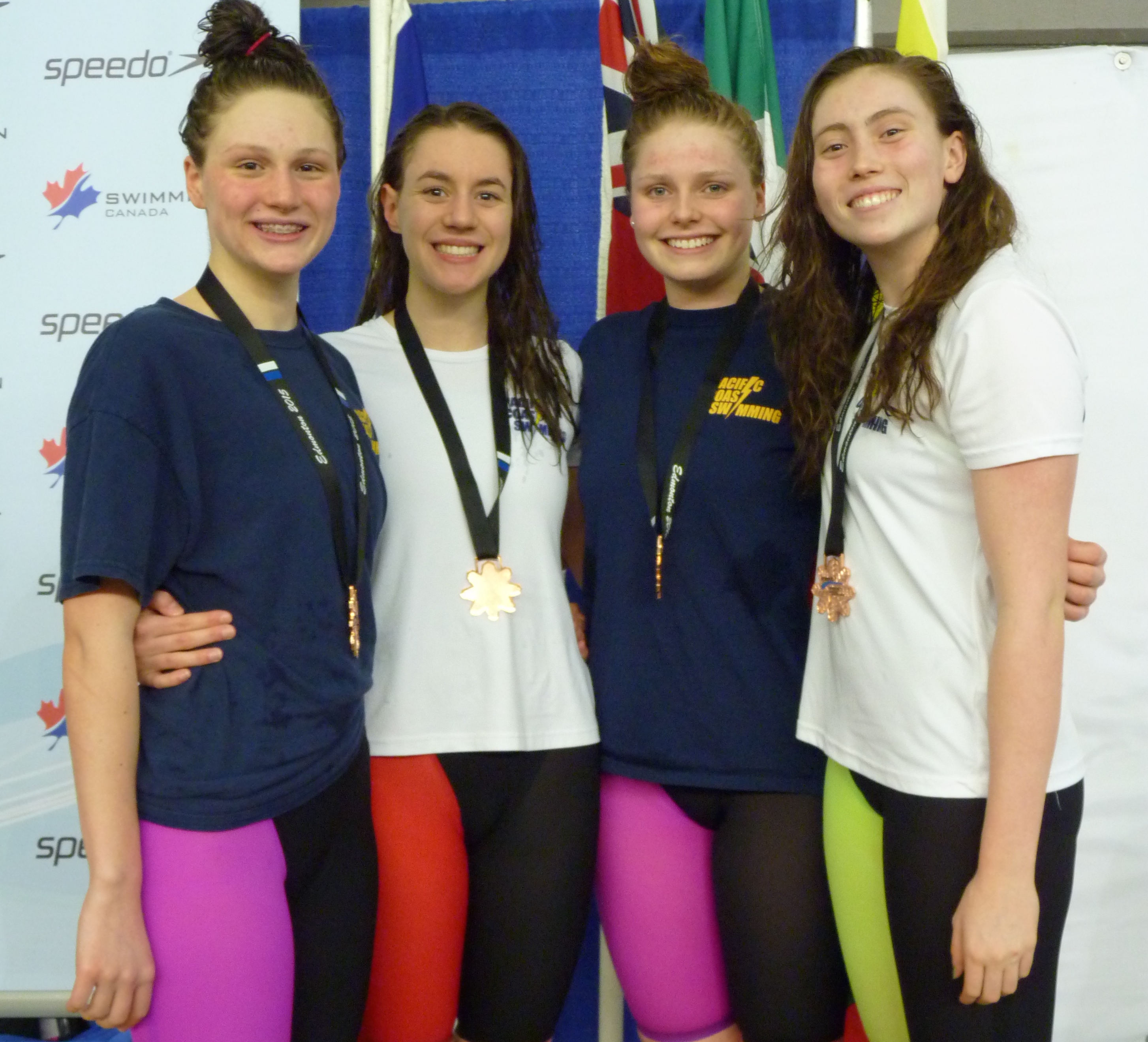 4x100 F.R. Bronze 3:57.59...Rachel Sawchuk (59.71), Allison Ballantyne(100.35), Molly Gowans(57.29) and Lauren Crisp(100.24) set a new VIR record striking 3 seconds off the old mark.