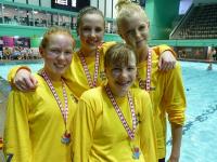 The 4x100MR girls 14 yr relay team of Salin Bol, Lauren McMillan, Rosie Moulton, Hanna Carter, silver medalists.