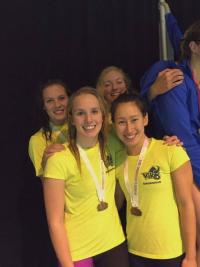 We started Saturday finals with some great 4 x 50 IM relays. Our 12-13 boys (Dylan Kormendy, Tom Chapman, Jacob Rambo and Anthony Gutierrez) placed second, although they had to race the clock in the first heat. We won 14-15 girls category (Lily Chen, Emma Carter, Jessica Luo, Allison Ballantyne) and placed 3rd in girls 16 & over (Anna Letkeman, Haley Bennett, Erin Lawrance, Rachel Sawchuk).